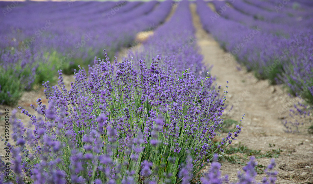 Summer flowering fields with lavender and poppies.