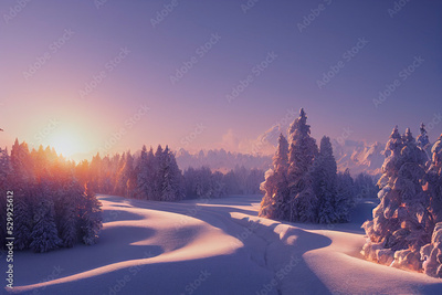 Beautiful winter landscape, snowy sunset