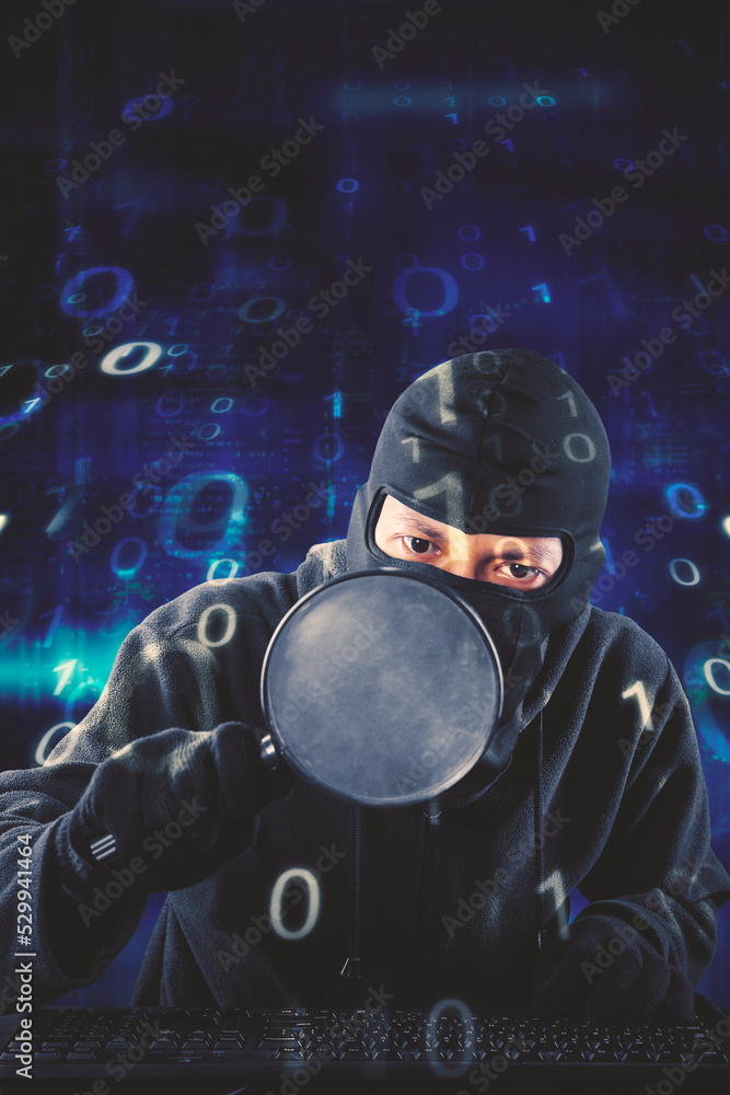 Hacker look at a computer security in cyberspace