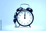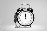 Businesswoman make a call phone near alarm clock