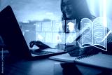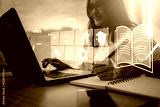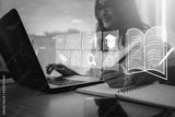 young woman with learning language during online courses using netbook ,