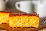 Closeup of Italian Rice Pudding Cake made with Almonds, Milk and Amaretti Cookies., called also Torta degli Addobbi or Torta di riso.