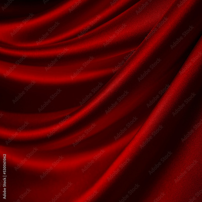 Red silk satin. Curtain. Luxury background for design. Soft folds. Shiny smooth flowing fabric. Wavy. Christmas, Valentine, Valentine's day, anniversary, awarding, festive.