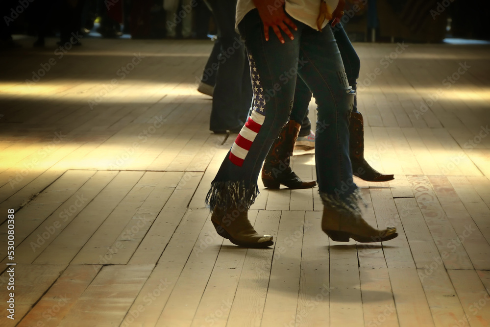 Legs close up of traditional western folk music dancers blur dynamism effect