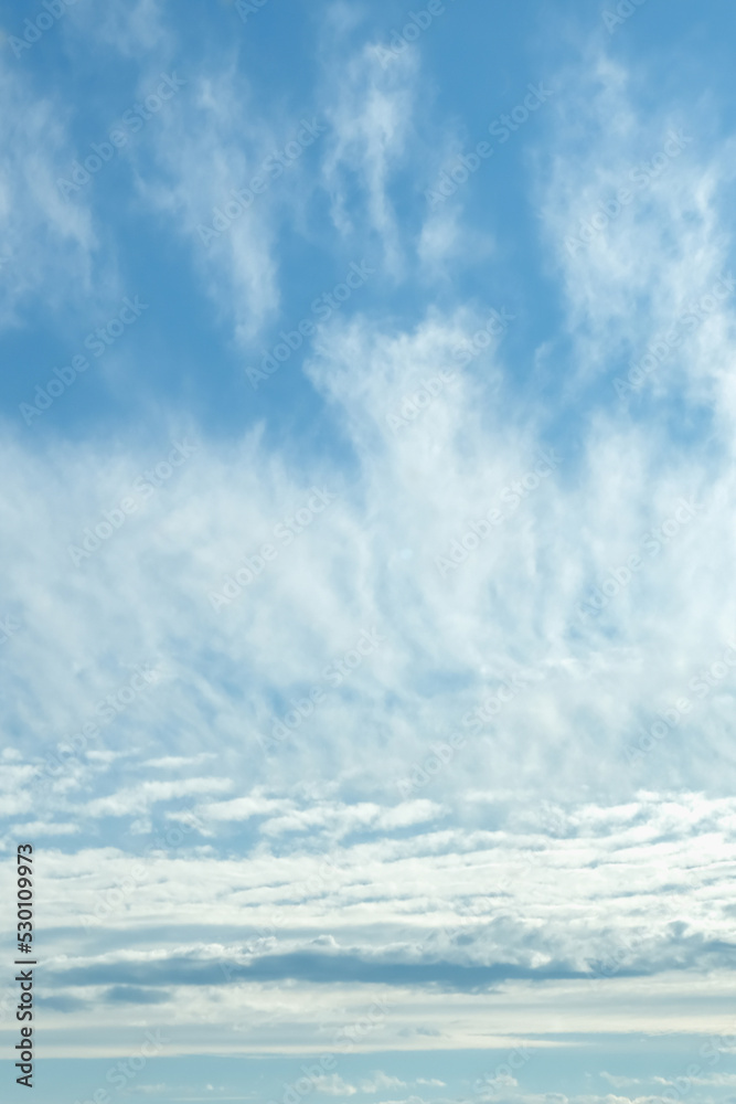 Blue sky with white clouds. Beautiful cloudy sky. Skyward. Endless skyline. The sky at dawn.