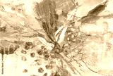 Art oil and Acrylic smear blot with pencil, oil pastel scribble elements. Modern abstract texture color stain background.