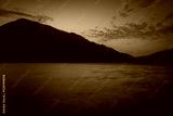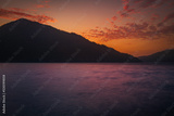 Wildfire smoke and sunset landscape over Lake Crescent in Olympic National Park, Washington State. Long exposure photography.