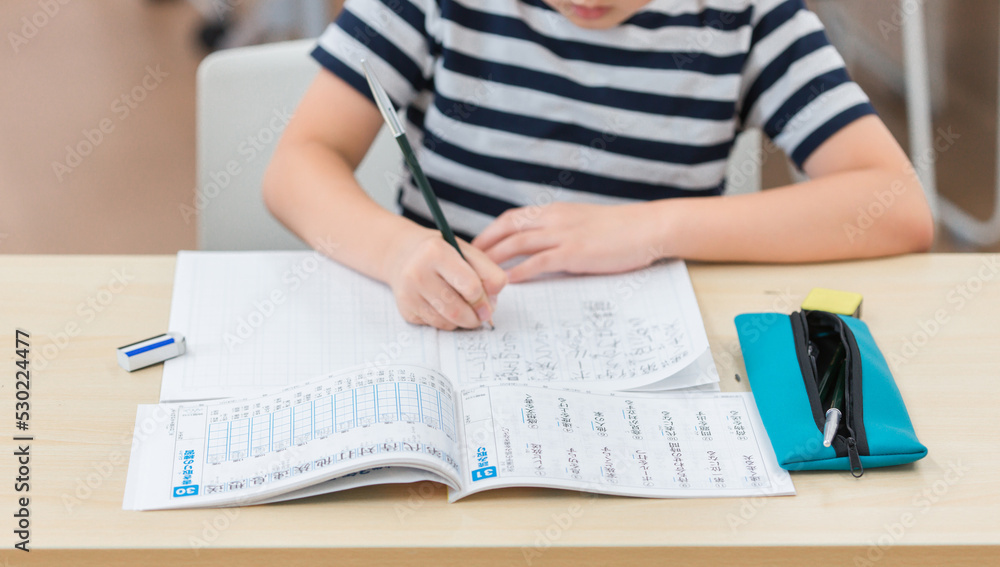 漢字の勉強をする小学生の男の子
