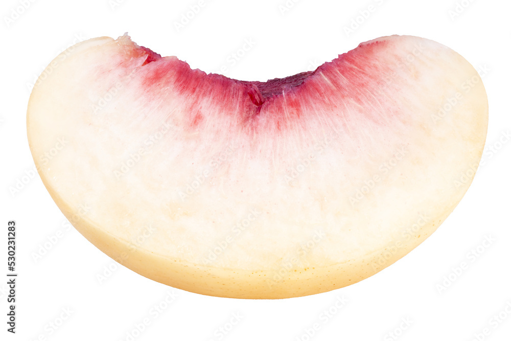 Peach fruit with leaf isolated on white background, Fresh White Peach on White Background