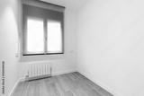 Empty room with bright window, laminate flooring and newly painted white walls in refurbished flat