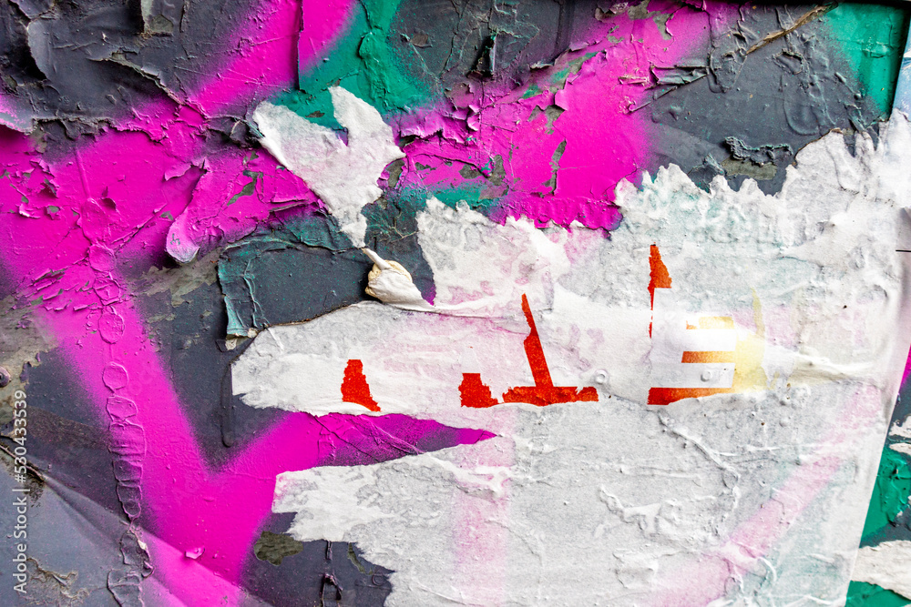 Old grunge torn collage posters creased crumpled paper placard texture background. Ripped faded paper backdrop surface placard
