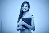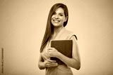 Smiling teacher or female businessperon with book. Isolated portrait.