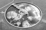 Aerial view to sewage treatment plant. Grey water recycling. Waste management theme.