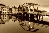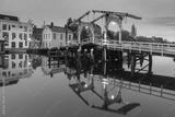 Night Leiden canal Galgewater and Rembrandt Bridge, South Holland, Netherlands