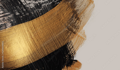 Art modern oil and acrylic smear blot canvas painting wall. Abstract texture gold, bronze, black and white color stain brushstroke texture background.