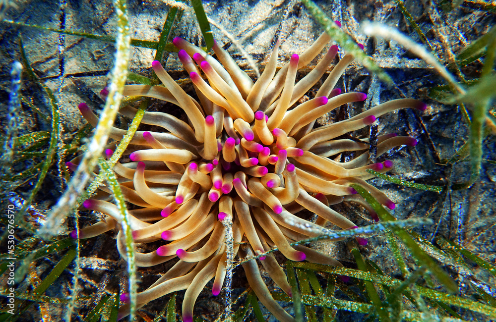 Golden anemone -(Condylactis aurantiaca), sea anemone in to the Mediterranean sea