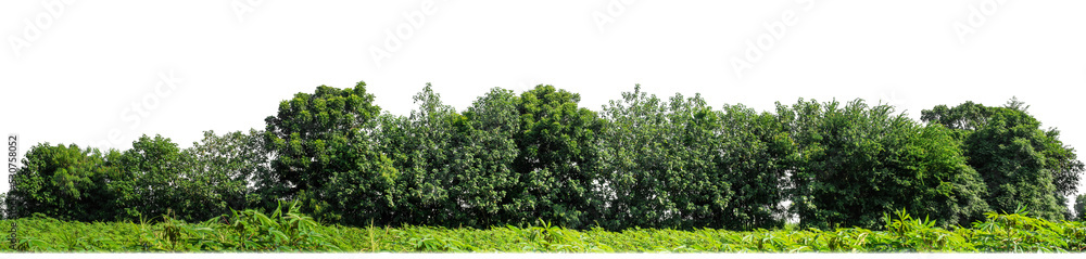 Green Trees on transparent background. are Forest and foliage in summer for both printing and web pages with cut path and alpha channel