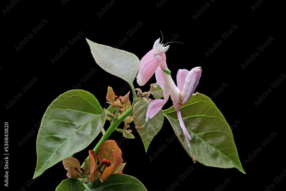 Beautiful Pink Orchid mantis on flower with isolated background, Pink Orchid mantis closeup