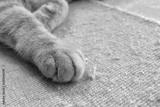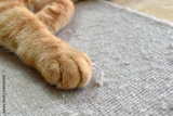 Ginger cat paws and claws on the rug or carpet. Copy space is on the right side. Photo can use for the concept of how to stop cats scratching the rug or carpet.