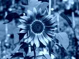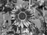 Słoneczniki latem w ogrodzie. Oświetlone jaskrawym światłem słonecznym czerwono żółte płatki na długich zielonych łodygach.