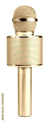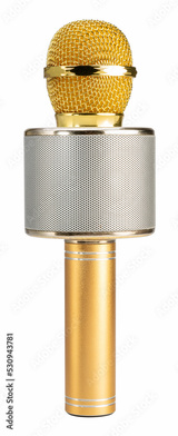 Wireless microphone with speaker isolated on white background, Golden Wireless microphone on white background With clipping path.