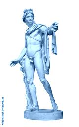 God Apollo sculpture. Ancient Greek god of Sun and Poetry Plaster copy of a marble statue isolated on white with clipping path