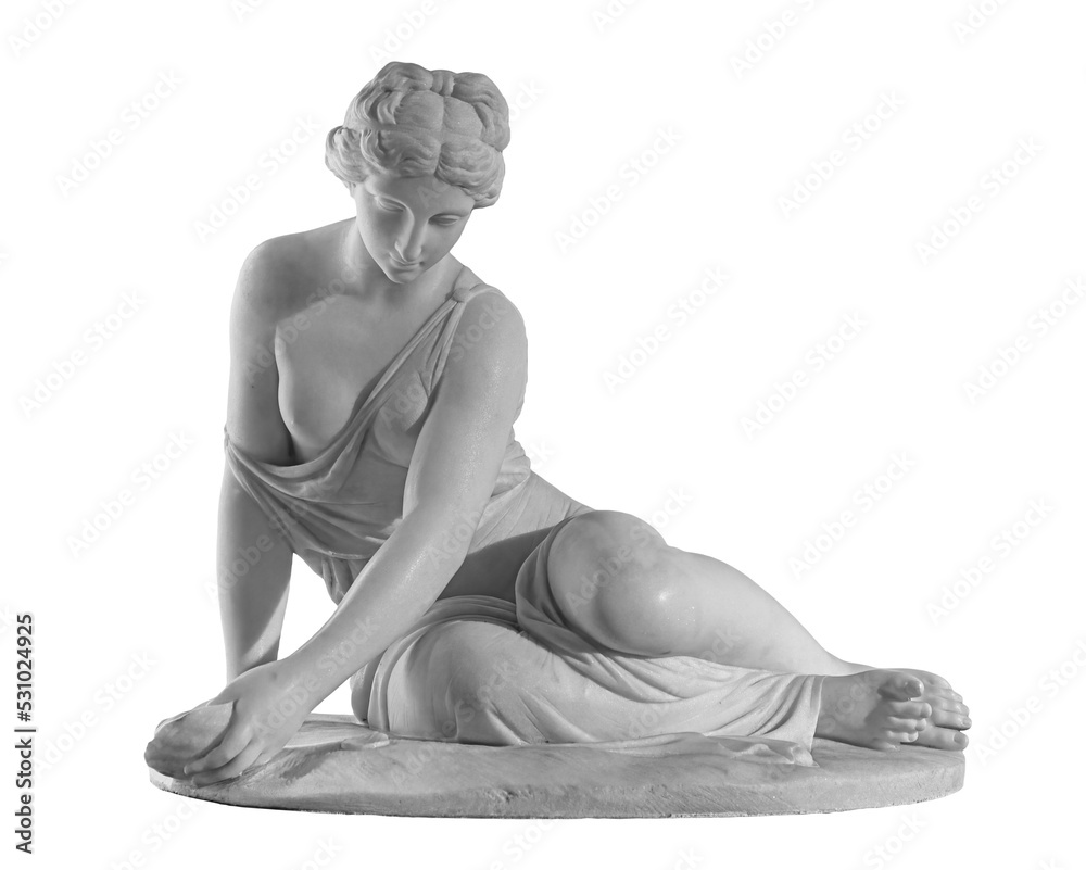 Ancient marble statue of a nude woman. Antique naked female sculpture. Sculpture isolated on white background