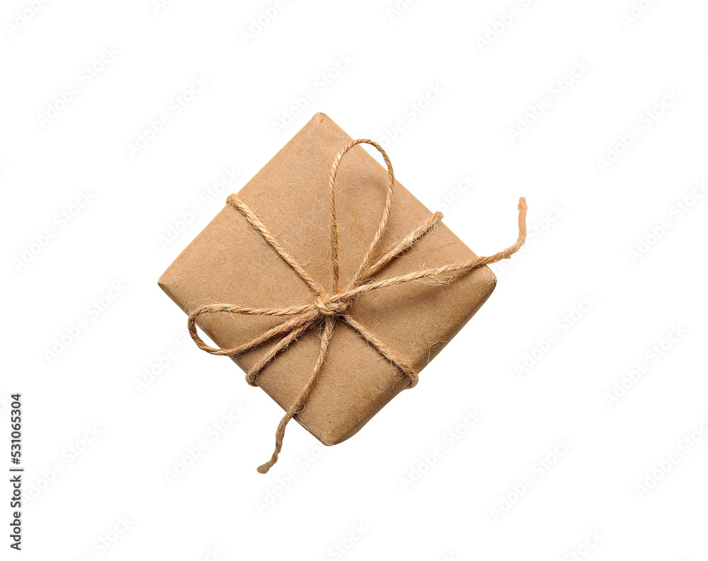 Christmas kraft paper gift box isolated png object