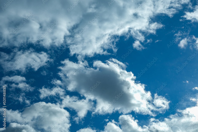 Blue sky with thunderclouds. The sun breaks through the clouds. Black clouds.