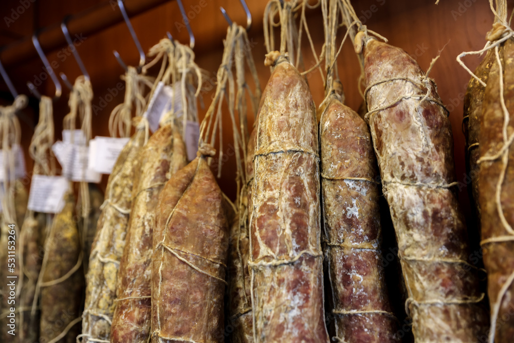 Modena, Italy - July 9, 2022: The various stages of prosciutto production in the industrial warehouse of Prosciuttificio Leonardi in the Modena region of Italy