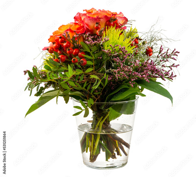 Closeup of an isolated flower arrangement in a glass vase
