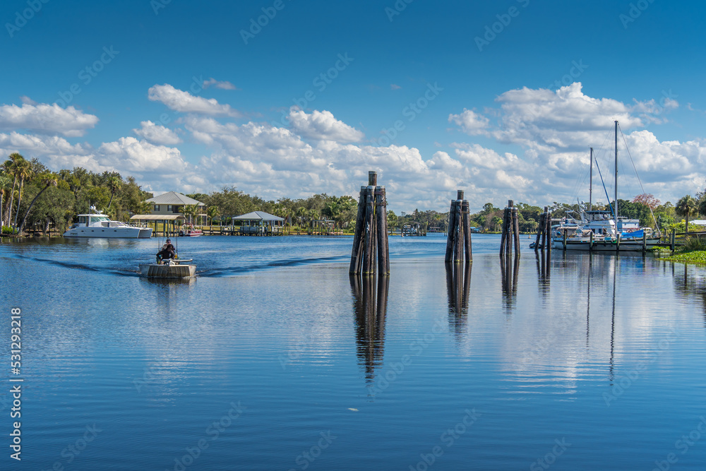 Boat on River by Piers