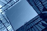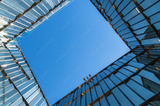 The blue sky is reflected in the windows of the modern glass facade. architectural abstraction. Modern space.Travel destination concept. Copy space.