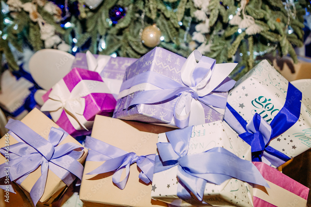 christmas decor purple balls decoration inside house