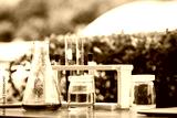 Test tubes with colorful chemical on table. Science chemistry concept.