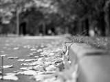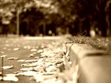 Yellow leaves lie on the pavement. The concept of autumn.