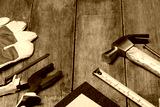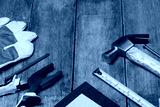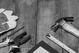Construction instruments on wooden table
