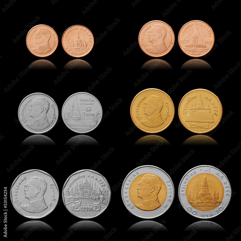 Thailand coins collection. 25, 50 satang, 1, 2, 5, 10 baht