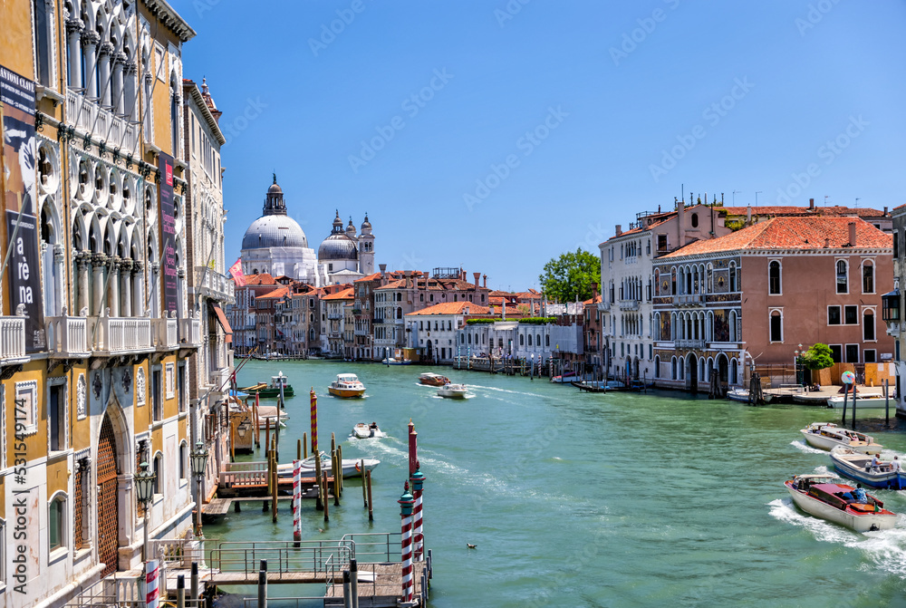 Venice, Italy - July 5, 2022: Building exteriors along the canals in Venice Italy