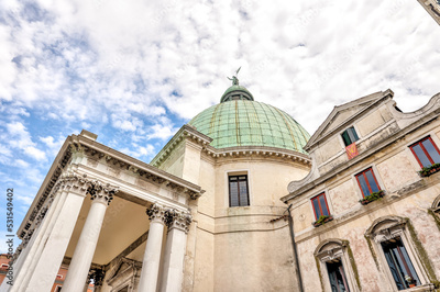 Venice, Italy - July 5, 2022: Building exteriors along the canals in Venice Italy