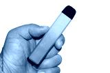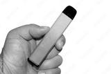 Electronic cigarette in hand on a white background.Disposable electronic cigarette.Vape with liquid for smoking.