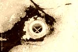 An old cast-iron rusty bathtub with cracks.Background of a rusty cast-iron bathtub.The drain in the bathroom is covered with rust.