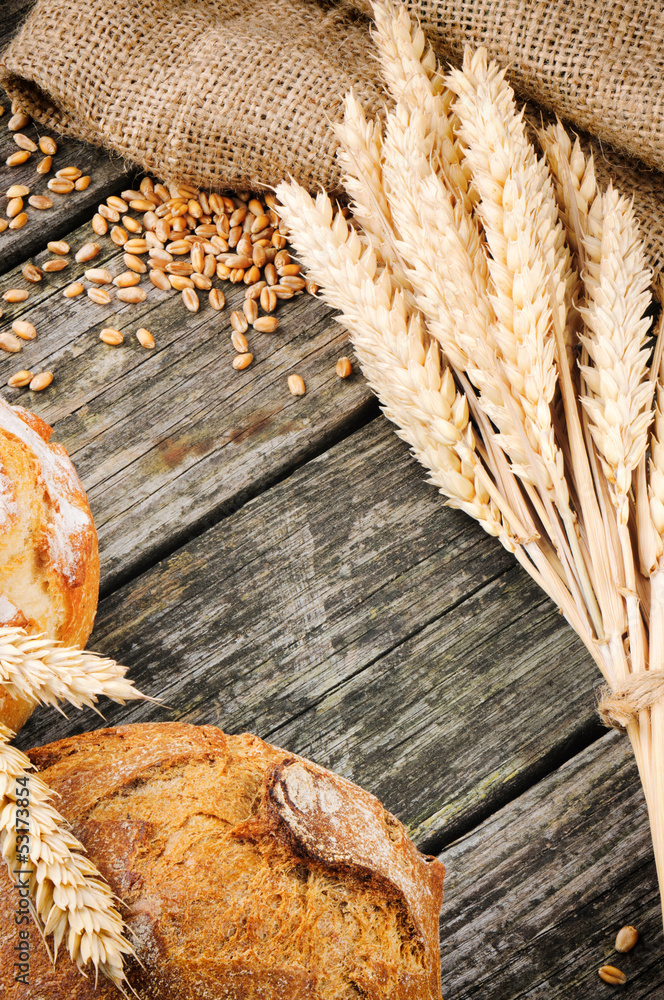 Agricultural frame with bread and wheat