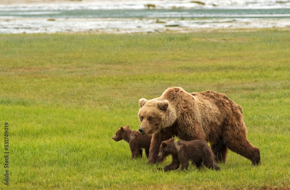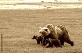 Grizzly Bear Sow Protecting Cubs