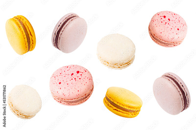 Macaroons sweet food png French dessert . Pastel yellow, pink color