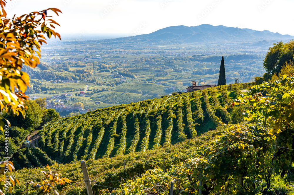 View of the Conegliano Valdobbiadene hills in autumn. Italy