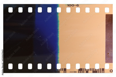 Strip of the poorly exposed and developed celluloid film on transparent background
