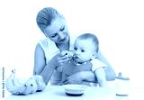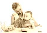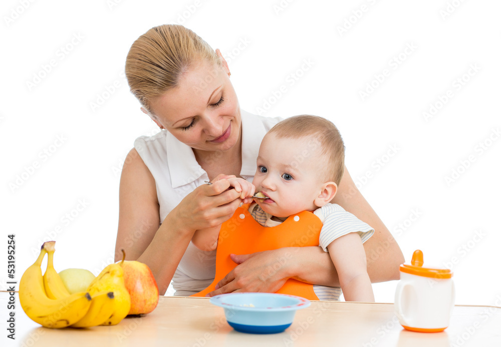 mother spoon feeding baby boy