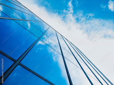 Modern building Glass facade with Sky reflection Architecture details