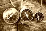 round compasses on natural background
